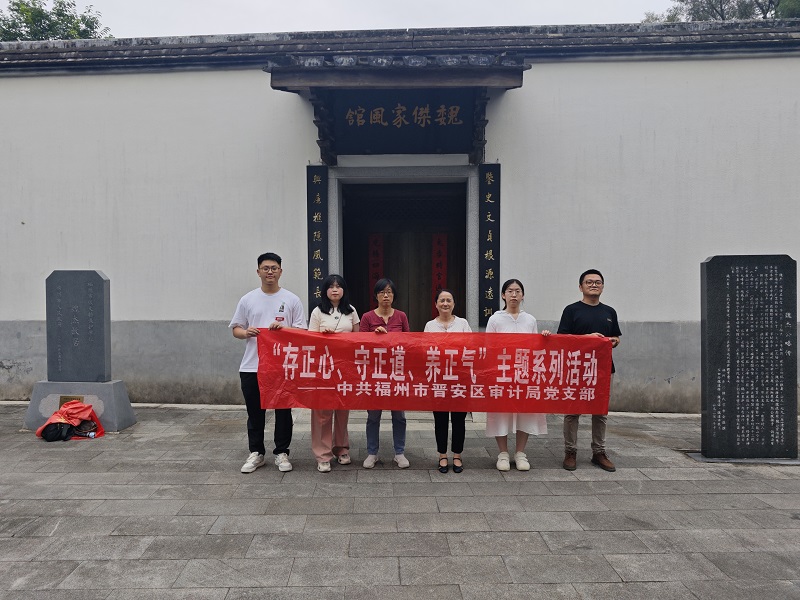 近期,福州市晋安区审计局组织干部职工前往晋安区魏杰家风馆开展“存正心、守正道、养正气”主题系列党日活动,旨在进一步加强干部队伍建设,激励广大审计人员爱岗敬业、争先创优、比学赶超,积极践行社会主义核心价值观。