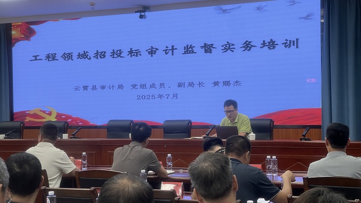 (图为:云霄县审计局在云霄县招投标领域整治会上专题授课)
