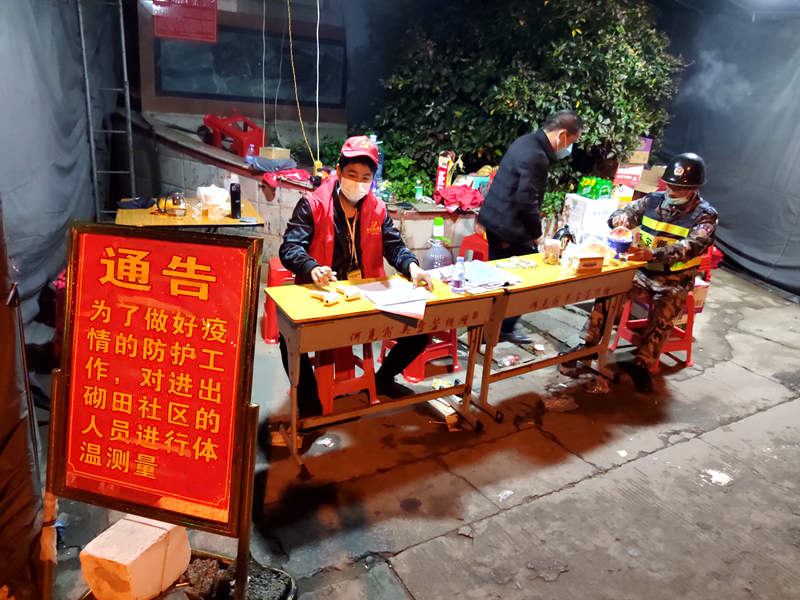 图一:凌晨1点,在社区主要出入岔口对进出人员情况进行汇总登记。