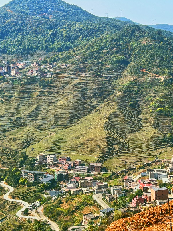 下车的时候,我并不知道自己在多高的地方,直到山脚下那群此刻看起来只有枫叶那么大的连片房屋闯入了眼帘,抬起视线往远处看,山。近处的身披墨绿的山斜斜而卧,远处的被天际笼罩的山隐约描出与蓝天的分界,眯起眼睛仔细看,界线又仿佛隐去了。