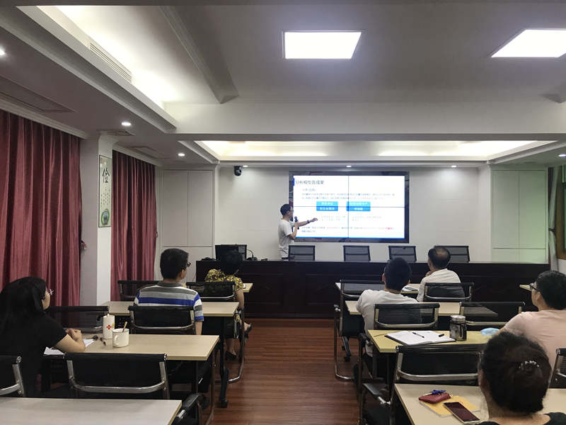 (图为朱臻隆在单位讲解分享数据分析模型)