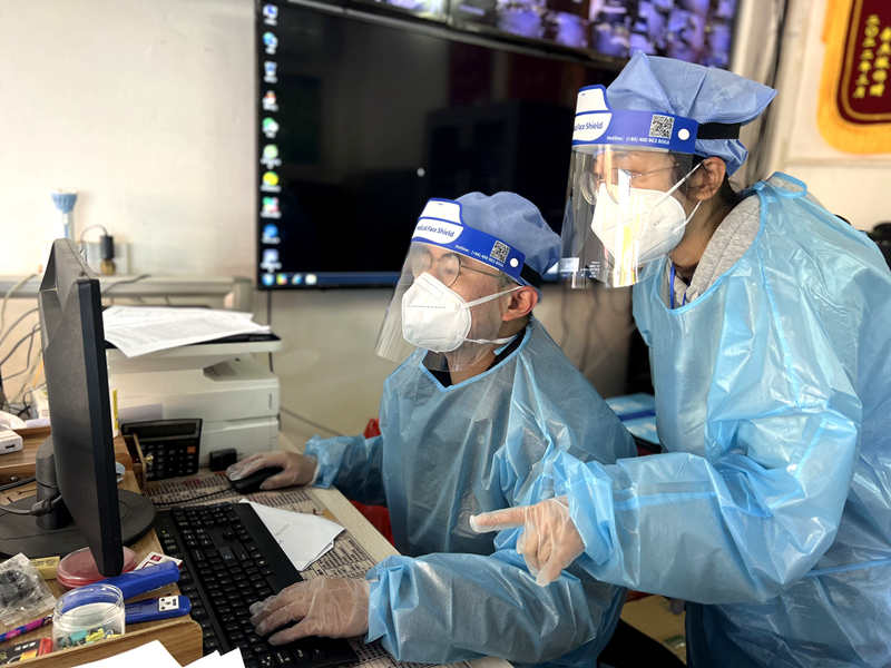 (图为朱臻隆在抗疫一线分析核酸检测数据)