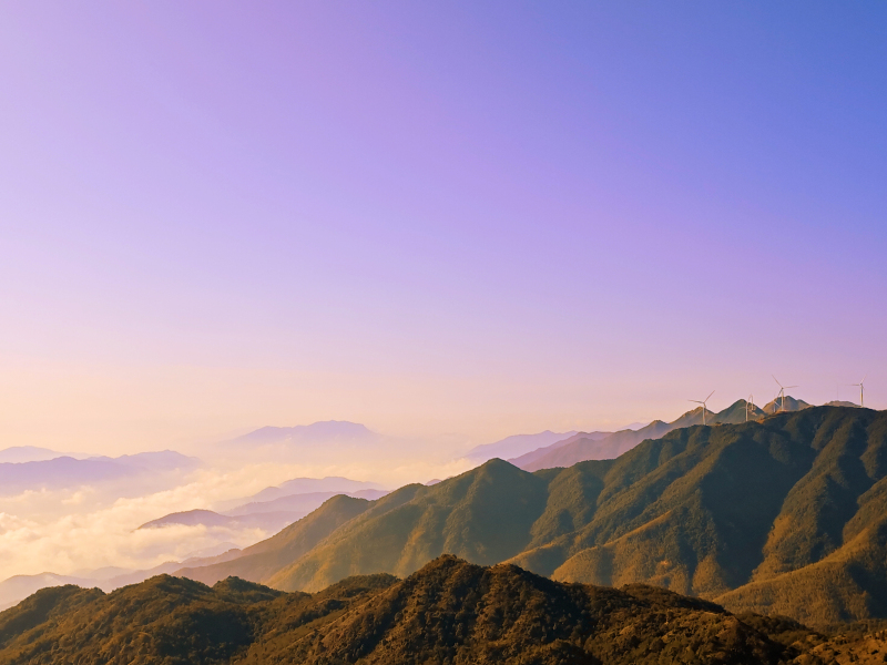 群山叠翠映霞晖,风叶悠悠舞岭巍。此景迷人情不禁,愿同山水共忘归
