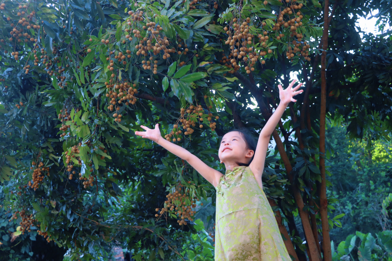 《观童摘龙眼》摄影作品
