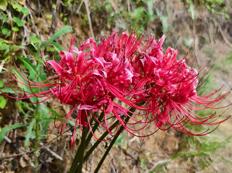 《曼珠烨烨缀幽坡,沙华依依惹梦波。叶隐花消缘似幻,唯余血色照秋思——曼珠沙华》(摄影作品)