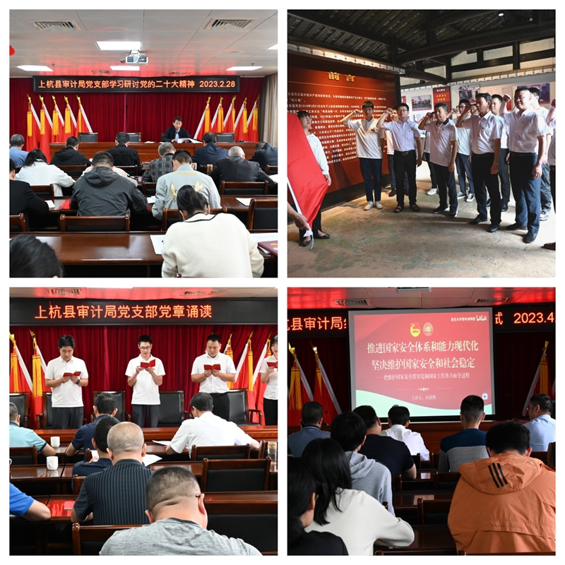 2023年以来,上杭县审计局始终把学习宣传贯彻党的二十大精神与审计工作紧密联系起来,结合“深学争优、敢为争先、实干争效”行动,深入开展“党章传诵我来讲、党徽闪光我担当、党旗飘扬我先行”活动,引导全体党员干部全面学习、全面把握、全面落实党的二十大精神,让党章时时传诵、党徽处处闪光、党旗高高飘扬,进一步引领广大审计干部悟思想、铸忠魂、担使命。