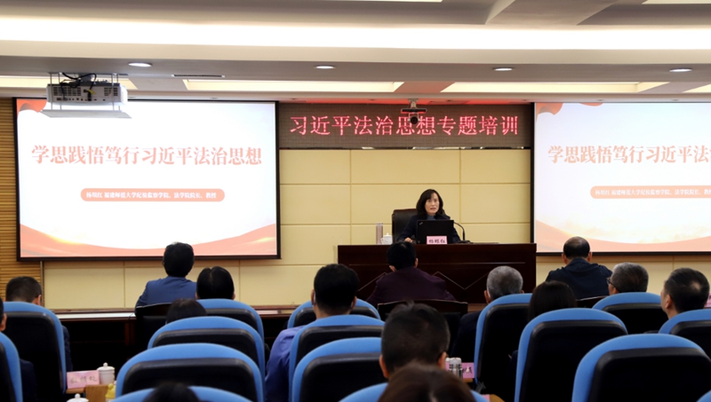 习近平法治思想是习近平新时代中国特色社会主义思想的重要组成,是马克思主义法治理论中国化的最新成果,是全面依法治国的根本遵循和行动指南。为深入学习宣传贯彻习近平法治思想,深化“深学争优、敢为争先、实干争效”行动,强化全员理论武装,11月28日,省审计厅举办习近平法治思想专题培训,邀请福建师范大学纪检监察学院、法学院院长杨垠红教授,讲授《学思践悟笃行习近平法治思想》,厅机关党员、干部及设区市审计机关党员、干部约500人通过“线上+线下”方式参加培训。